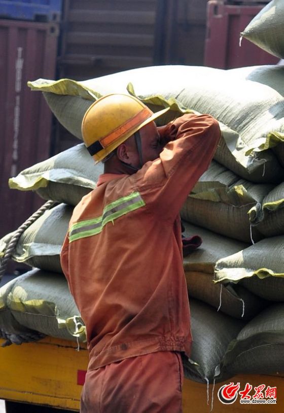 工作間隙,裝卸工人擦一把汗水