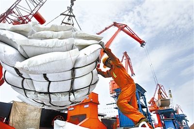 8月2日,青島港工人冒著酷暑進(jìn)行作業(yè)。
