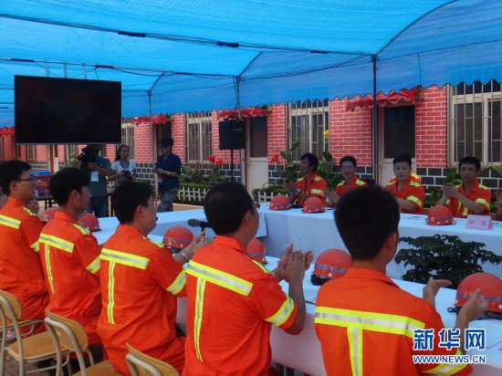 8月3日,青島港集團前港公司堆裝隊維修班召開“中國夢我的夢”主題班會。會上,全班22人紛紛暢談自己的個人夢。堆裝隊隊長張瑞正介紹說,全隊一共12個班,每個班都在每月月初舉行一次主題班會,鼓勵大家積極發言。圖為記者們觀摩主題班會。新華網 記者 李志強 攝