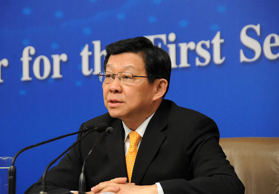 十二屆全國人大一次會議新聞中心3月8日上午10時在梅地亞中心多功能廳舉行記者會,商務部部長陳德銘就“發展國內外貿易和促進經濟合作”的相關問題回答中外記者的提問。圖為商務部部長陳德銘 新華網/中國政府網 翟子賀 攝