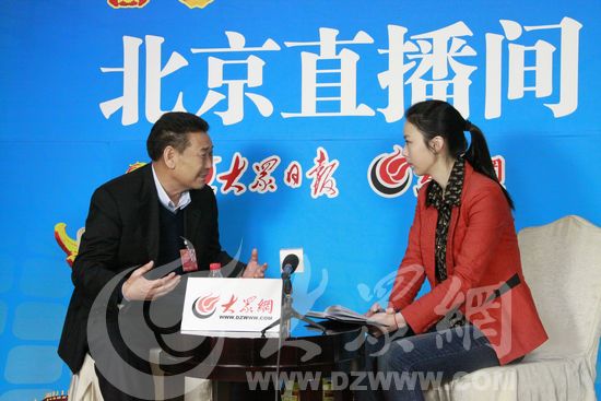 全國人大代表、山東華盛江泉集團(tuán)有限公司董事長王廷江做客大眾網(wǎng)北京直播間,談有關(guān)新農(nóng)村建設(shè)的配套設(shè)施問題。(特派記者 張帆 攝)