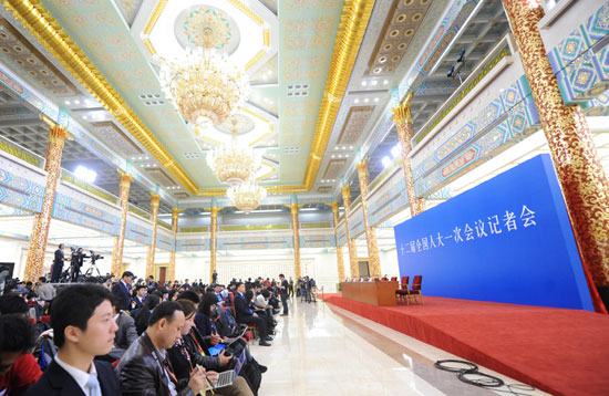 3月9日,十二屆全國人大一次會議舉行記者會,外交部部長楊潔篪就“中國的外交政策和對外關(guān)系”答中外記者問。圖為記者會現(xiàn)場。新華網(wǎng)/中國政府網(wǎng) 陳競超 攝