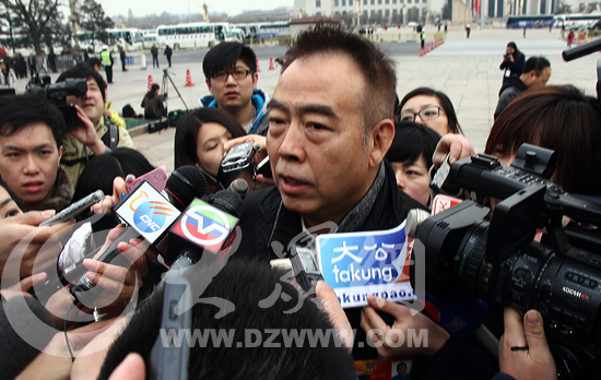 今天下午,在人民大會堂,全國政協十二屆一次會議召開預備會。在入場時,全國政協委員趙本山、陳凱歌和毛新宇等明星委員成為眾媒體記者采訪的焦點,他們被“圍追堵截”幾乎寸步難行。