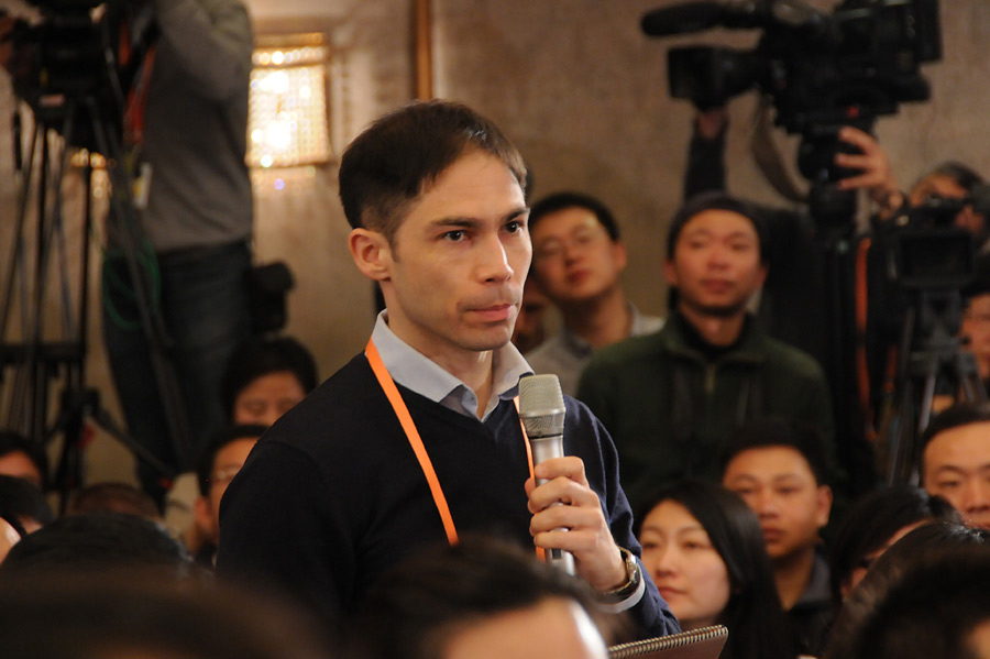 3月4日,十二屆全國人大一次會(huì)議在人民大會(huì)堂一層新聞發(fā)布廳舉行新聞發(fā)布會(huì),由大會(huì)發(fā)言人就會(huì)議議程和人大工作相關(guān)的問題回答中外記者的提問。圖為路透社記者提問。新華網(wǎng)/中國政府網(wǎng) 翟子赫 攝