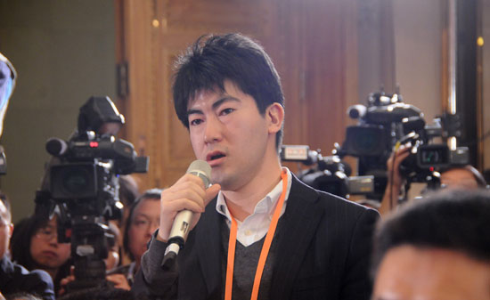3月4日,十二屆全國人大一次會(huì)議在人民大會(huì)堂一層新聞發(fā)布廳舉行新聞發(fā)布會(huì),由大會(huì)發(fā)言人就會(huì)議議程和人大工作相關(guān)的問題回答中外記者的提問。圖為日本共同社記者提問。新華網(wǎng)/中國政府網(wǎng) 翟子赫 攝