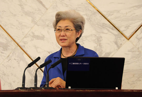 3月4日,十二屆全國人大一次會議在人民大會堂一層新聞發(fā)布廳舉行新聞發(fā)布會,由大會發(fā)言人就會議議程和人大工作相關的問題回答中外記者的提問。圖為十二屆全國人大一次會議副秘書長、新聞發(fā)言人傅瑩正在回答記者提問。新華網/中國政府網 翟子赫 攝