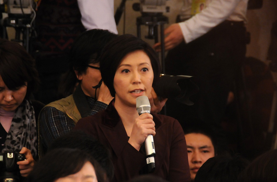 3月4日,十二屆全國人大一次會(huì)議在人民大會(huì)堂一層新聞發(fā)布廳舉行新聞發(fā)布會(huì),由大會(huì)發(fā)言人就會(huì)議議程和人大工作相關(guān)的問題回答中外記者的提問。圖為香港亞洲電視臺(tái)記者提問。新華網(wǎng)/中國政府網(wǎng) 翟子赫 攝