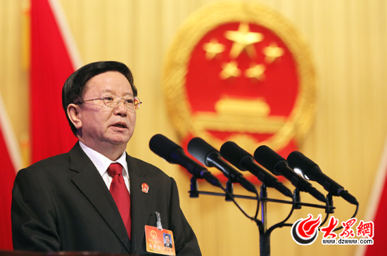 在省十二屆人大一次會議第二次全體會議上,山東省高級人民法院院長周玉華作了《山東省高級人民法院工作報告》。報告指出,五年來,全省法院嚴查黑社會性質犯罪,“聶磊案”143名被告被判刑;嚴打“舌尖上的犯罪”,928人因危害食品藥品安全犯罪獲刑。