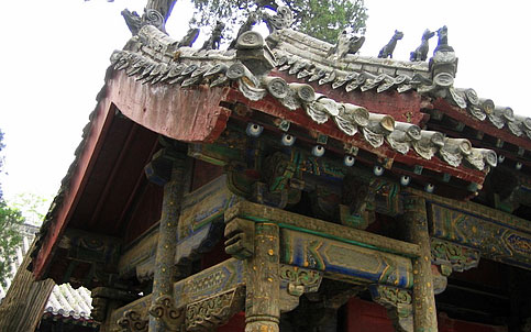 穿過第一進狹長的庭院,便是孔府中路的第二道大門,俗稱二門。門建于明代,門楣高懸明代詩 人、吏部尚書、文淵閣大學士李東陽手書“圣人之門”豎匾,下有閥閱承托,門柱有石鼓夾抱。正門左右各有腋門一座,耳房一間。在封建社會,平時只走腋門,正門不開,以示莊嚴。