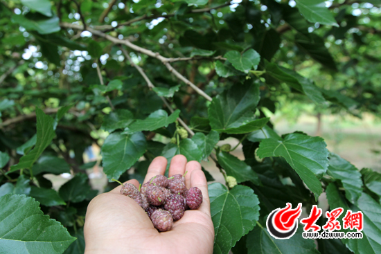 公園內(nèi)桑葚結(jié)出的果實(shí)除了提供給來此的游客采摘外,大部分將被加工成特色白蘭地和果醋。大眾網(wǎng)記者馬鑫 攝