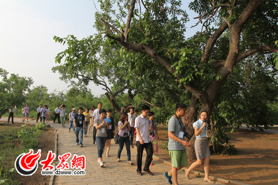 “真甜!比糖還甜!”記者們采摘品嘗黃河森林公園內(nèi)的特色桑葚果實(shí)。大眾網(wǎng)記者馬鑫 攝