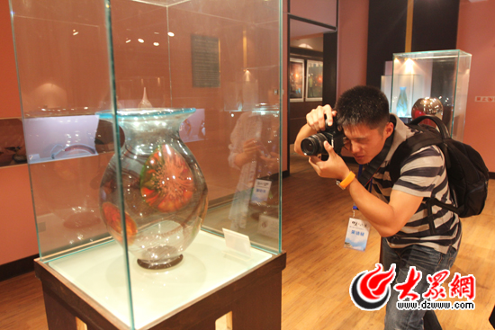 “喜歡它的鮮艷,喜歡它的純凈。”已進入博物館記者們就忙著搶拍各色琉璃藝術品。大眾網記者 馬鑫 攝