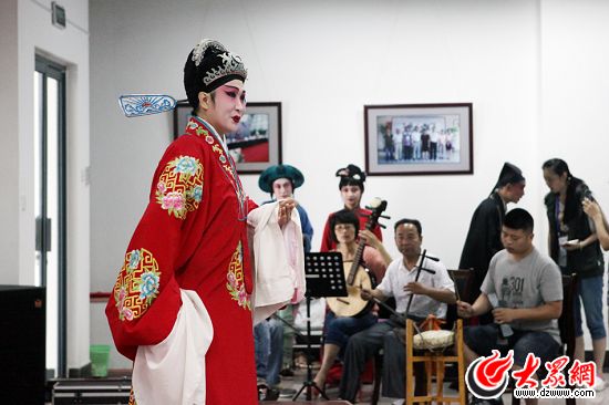 在采訪中,最能引起采訪團記者們興趣的莫過于傳統曲藝高密茂腔的表演。高密茂腔曲調質樸自然、委婉柔怨,生活氣息濃郁,被譽為“膠東之花”。茂腔的唱詞語音多用本地方言,2006年4月被公布為首批國家級非物質文化遺產保護項目。今天,采訪團記者們觀賞了“王漢喜借年”選段等表演,扮演劇中王漢喜的演員柳欣今年27歲,已經是十年的“老戲骨”。他告訴記者,他們每個月會在高密文化館內向游客及市民表演2至3次,免費向所有觀眾開放。