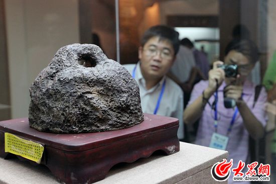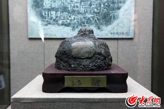 “聚焦美麗山東——第九屆中國網絡媒體山東行”東線采訪團來到文登市博展中心參觀先秦文化統一度量衡用的秦權 大眾網記者 楊春衛 攝