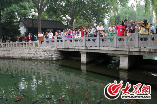 采訪團記者們欣賞趵突泉公園的美景。大眾網記者 馬鑫 攝