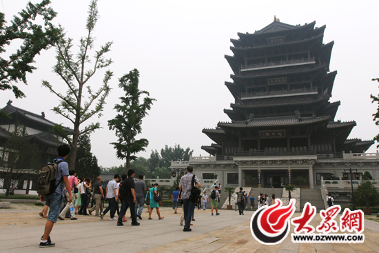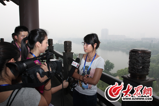 采訪團(tuán)記者們登上超然樓,俯瞰大明湖美景。大眾網(wǎng)記者 馬鑫 攝