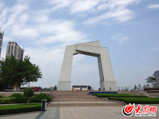 藍天白云之下的臨沂書法廣場