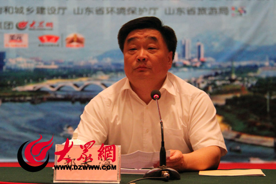 日照市委宣傳部常務(wù)副部長郭長海主持發(fā)布會。大眾網(wǎng)記者 侯健 攝