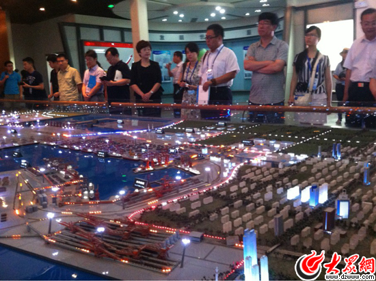 20日,“聚焦美麗山東——第九屆中國網絡媒體山東行”南線采訪團走進日照港。圖為記者觀看日照港規劃。(大眾網記者 熊戈措 攝)