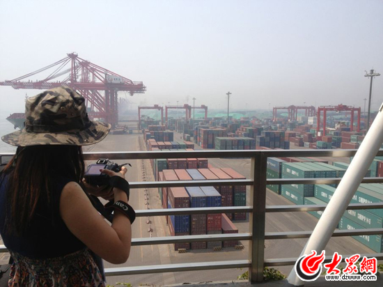 記者用相機記錄這遍地集裝箱的集裝箱。(大眾網記者李兆輝 攝)