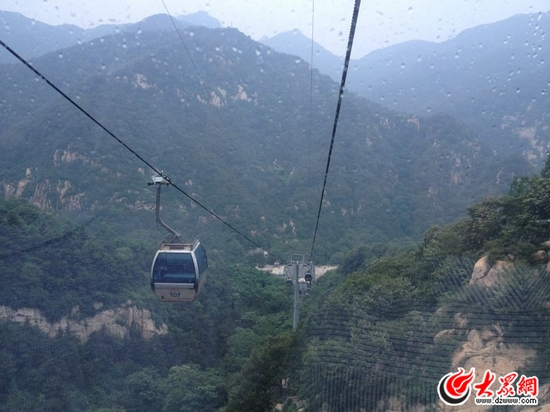 22日,媒體行南線采訪團乘坐索道登向泰山山頂。