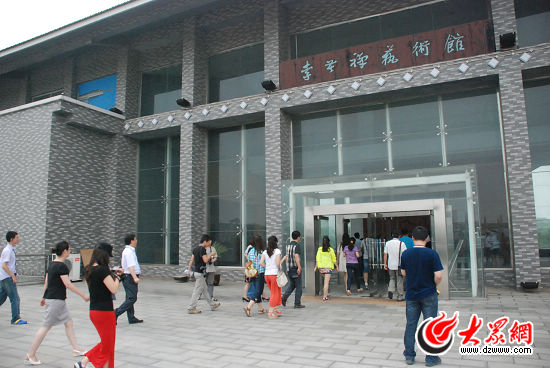 采訪團(tuán)成員走進(jìn)李苦禪藝術(shù)館,整個(gè)場(chǎng)館端莊大方,氣勢(shì)磅礴,頗具漢唐風(fēng)韻。大眾網(wǎng)記者 郭豪 攝