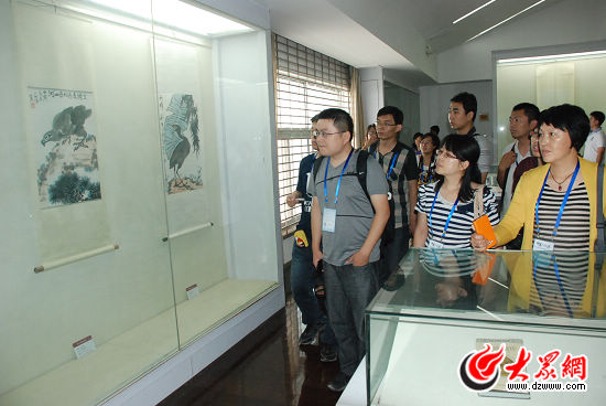 采訪團(tuán)成員參觀寫意畫大師李苦禪的生平事跡。 大眾網(wǎng)記者 郭豪 攝