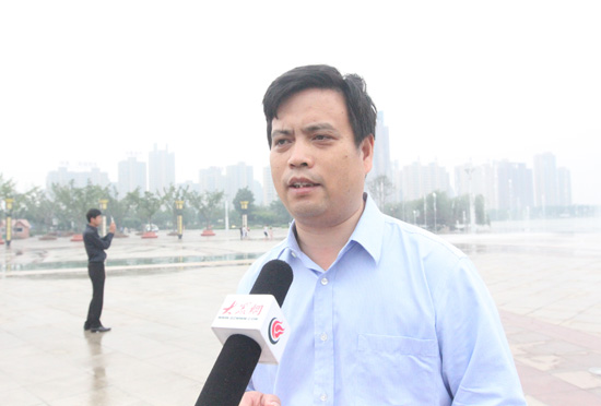 棗莊市中區委常委、宣傳部長王光明接受大眾網采訪,介紹東湖公園的建設及規劃情況。 記者 郭豪攝