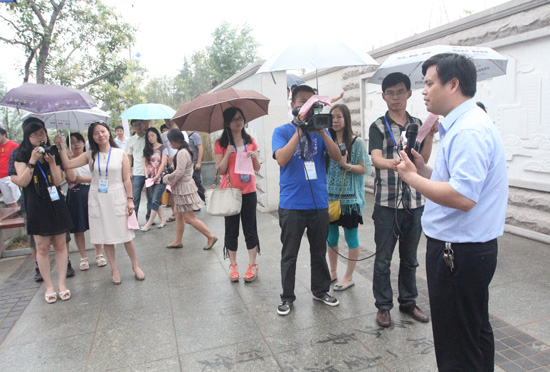 記者們沿著西沙河參觀采訪。 記者 郭豪攝