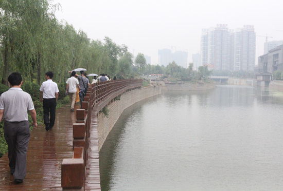 在施工中,包括整治河道8.8公里、鋪設(shè)污水管21.07公里、改造橋梁6座、建設(shè)橡膠壩9座以及景觀綠化64.9萬平米,計劃于2013年9月底完成。河道景觀規(guī)劃由天津園林院編制完成,對河道采取了“尊重”和“友好”的設(shè)計態(tài)度,培育一條有“生命”的河流,建成低維護(hù)的濱水綠地。