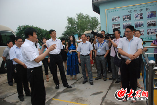 山東泉林紙業有限公司董事長李洪法向采訪團成員介紹泉林紙業的循環經濟發展模式。大眾網記者 郭豪 攝