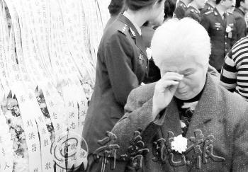 17日,前來為兩位山東英雄送行的市民悲傷落淚。 本報特派記者 邱志強 攝