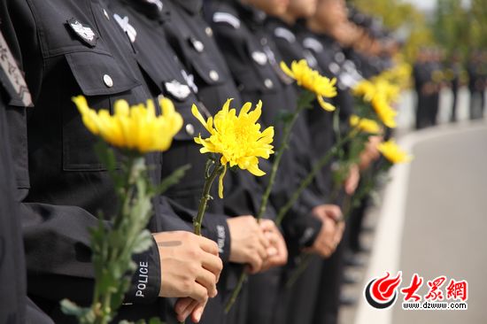 前來(lái)送行的隊(duì)伍,不僅有公安、市直機(jī)關(guān)工作人員、武警戰(zhàn)士還有學(xué)生、農(nóng)民工、出租車(chē)司機(jī)等不同身份不同職業(yè)的群眾,他們自發(fā)的站在道路兩旁,手舉鮮花、橫幅,胸前佩戴小白花,表達(dá)自己對(duì)英雄的悼念之情。當(dāng)靈車(chē)駛過(guò)時(shí),不少群眾忍不住落下眼淚。