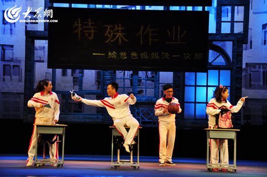大眾網青島10月19日訊(見習記者 劉宇昕)“回家給爸爸媽媽洗一次腳”這樣的“特殊作業”你曾經做過嗎?昨天下午由中國兒童藝術劇院演出的《特殊作業》在青島市人民會堂上演,演員幽默風趣的語言中也流淌著濃濃的親情。