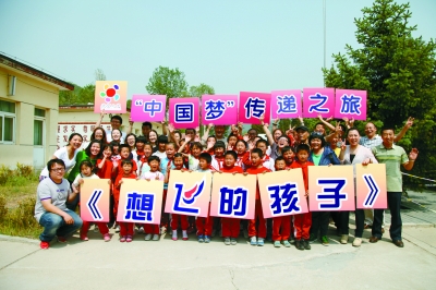 圖四:劇組赴老峪溝中心小學,與孩子們共同啟動“北京兒藝《想飛的孩子》中國夢傳遞之旅”。