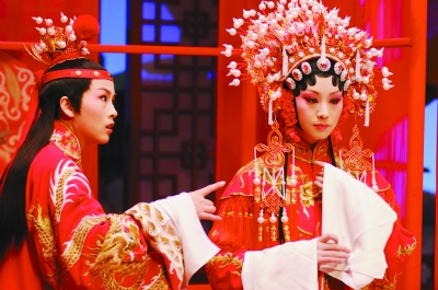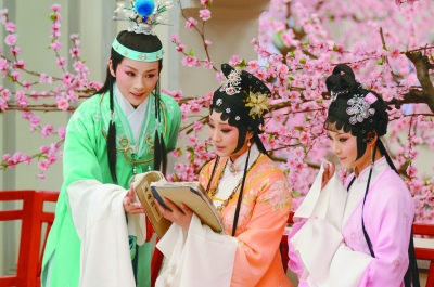 對扮演年幼寶玉的演員翁佳慧來說,習慣了傳統戲表演節奏,對新戲如何體現舞臺節奏卻“備感茫然”。“戲曲演員一般都是先重外型,再慢慢地去體驗內心,這是學戲的一種模式吧。但排了新戲,從進組的第一天起,導演就在講人物。感覺自己還像學生一樣。”翁佳慧坦言,相對于每天十幾個小時的排練,更費心思的是對人物性格的琢磨:“寶玉終生為情所累,這‘情’不只愛情,還有父母、手足、朋友情。”“寶玉年紀尚幼,但年幼不代表脂粉氣,應是小男孩特有的率真。”于是,翁佳慧在表演中融入了適合小男孩身份的動作,看黛玉時雙膝略蹲、雙手撐在膝蓋上,給黛玉講“耗子洞”故事時用可愛夸張的身段學耗子走路……