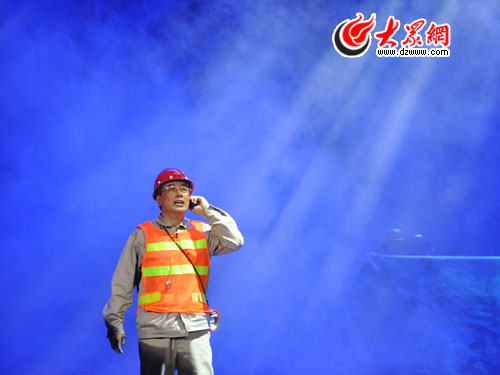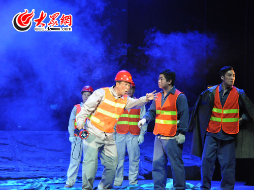 大眾網(wǎng)煙臺(tái)10月16日訊 (記者 鐘建) 在電閃雷鳴、暴雨傾盆的夜晚,剛剛獻(xiàn)完血,已經(jīng)連續(xù)工作15個(gè)小時(shí)的郭明義出現(xiàn)在了搶修礦山公路的搶險(xiǎn)現(xiàn)場(chǎng)……16日晚7時(shí)30分,根據(jù)郭明義事跡改編創(chuàng)作、由遼寧人民藝術(shù)劇院創(chuàng)作排演的現(xiàn)實(shí)主義話劇《郭明義》在煙臺(tái)廣電大劇院上演。
