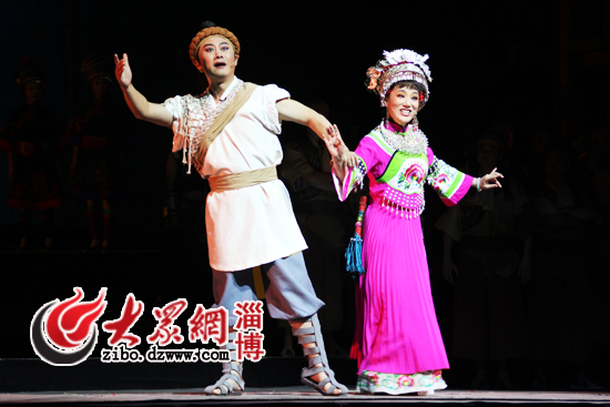 大眾網淄博10月16日訊(見習記者 孫奉娟)“妹娃要過河,是哪個來推我嘛!”10月16日晚上7點30分,湖北黃梅戲《妹娃要過河》在山東理工大學劇院上演。這部劇以湖北民歌《龍船調》為框架,以青年船夫阿龍和土家族姑娘阿朵的愛情故事為線索,以黃梅戲和土家族歌舞相結合的方式予以呈現,既有黃梅戲的魅力,也有土家族歌舞的美感,讓人欣心悅目。