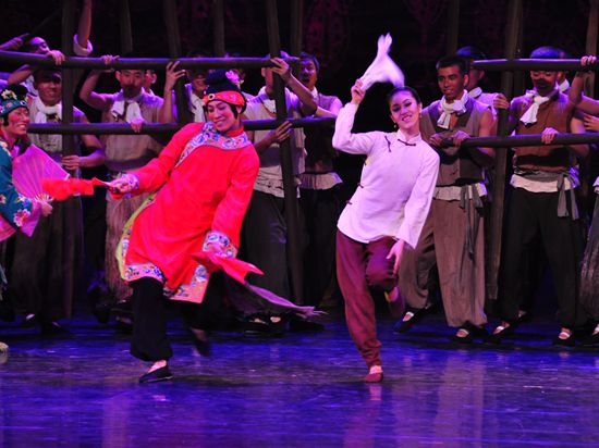 這部舞劇中除了幾位主演,還有舞群演員,“以前別人問我干什么的,我說是伴舞,現在我可以講,我是跳《紅高粱》的。”一位舞蹈演員說。據了解,舞者們每天9點是固定的排舞時間,而晚上9點也是固定的加班練習時間,《紅高粱》劇中的每一位演員都是這樣排練的!敖裉炷軐⑴啪毜某晒岬健嚬潯奈枧_上呈現給觀眾,我們的努力是值得的!