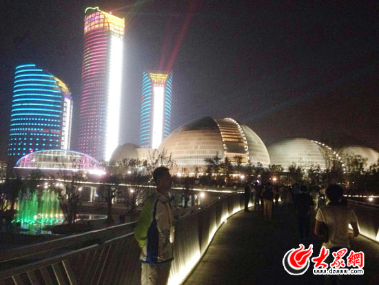 大眾網濟南10月11日訊(記者 尹海洋)晚上7:00,天色暗下來了,十藝節的主場館——省會大劇院的夜景美輪美奐,前來參加開幕式的觀眾紛紛拿出手機和相機,或者拍攝大劇院,或者在大劇院前合影留念。