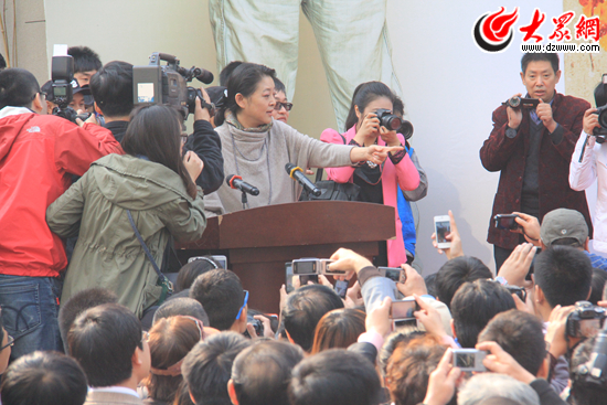 大眾網濟南10月18日訊(記者 尹海洋 馬俊驥)今天上午,倪萍“家在山東”繪畫作品展在山東省美術館拉開大幕。影迷、畫迷、媒體記者、湊熱鬧的群眾把舞臺團團圍住,只為一睹倪萍真身。倪萍也是大打親情牌,“來到老家就是親切,都沒外人!”