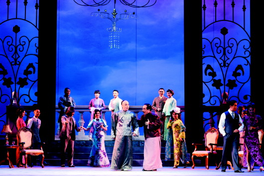 舞臺表演藝術(shù)的魅力,永遠(yuǎn)有提高的可能性和空間。《瑞蚨祥》這個戲要繼續(xù)打磨,繼續(xù)提高,也還是有空間的。就演員創(chuàng)作來講,首要的,是要對孟洛川這個主要人物的性格發(fā)展,他的心理過程,他內(nèi)心沖突最激烈的地方,有一個整體的理解和把握,有一個唱念做表的整體布局。一句話,就是要有一個演員的表演總譜,讓觀眾看到,還要看清楚孟洛川的性格起點是什么,發(fā)展的層次是什么,他最后走向了哪里。這是演員對角色深入理解、體驗之后作出的整體安排。孟洛川在劇中的性格發(fā)展其實是非常有戲劇性的。從一出場表現(xiàn)出來的年輕商務(wù)主政的傲氣、自信,居然炒了艾老掌柜的魷魚;到引進洋紗兵敗上海灘,艾隆標(biāo)強盤瑞蚨祥,布源被斷身陷絕境,在一系列挫折、失敗、反思之后有所應(yīng)變;再到最后,組織民間織戶,走工商結(jié)合之路,意識到要“經(jīng)道義,營民生”,與艾隆標(biāo)重歸兄弟之好。這個脈絡(luò)是層次清楚的,演員的創(chuàng)作,特別是演員的唱腔,必須沿著這個脈絡(luò)進行布局。在人物性格發(fā)展的重要節(jié)點上,要下功夫把重要唱段處理好,把身段表情處理好,舞臺上就會更加出彩,更加好看。