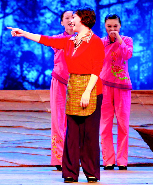 這次十藝節(jié)在山東舉辦,李新花又開始了新挑戰(zhàn),出演山東梆子現(xiàn)代戲《圣水河的月亮》女主角。“古裝戲有程式化的東西可以遵循,水袖等還能遮掩身段方面的不足,但《圣水河的月亮》是現(xiàn)代戲,全憑演員個人的功力展現(xiàn)給觀眾。”李新花說。