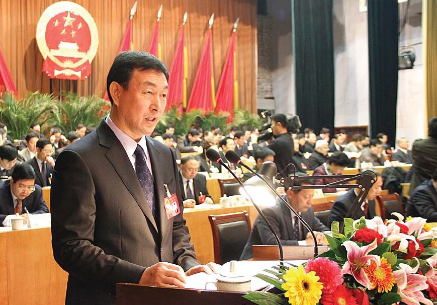 1月6日,泰安市第十六屆人民代表大會第二次會議在泰山影劇院隆重開幕。圖為市長王云鵬代表泰安市人民政府向大會作政府工作報告。 本報記者 曹劍 攝