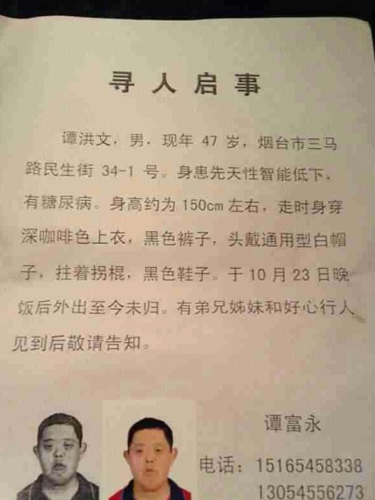 "譚洪文找到"消息不實 姐姐正在牟平尋找