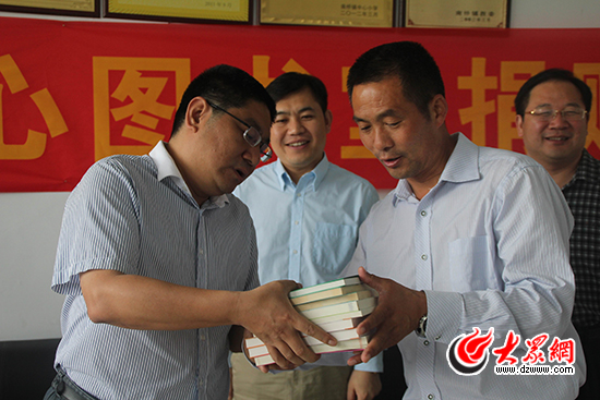 大眾網總編輯向該學校校長介紹捐贈有關書籍