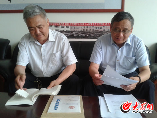 2013年6月9日,衣奮強(右)與襲著軍在翻看吳官正同志視察少管所相關材料。