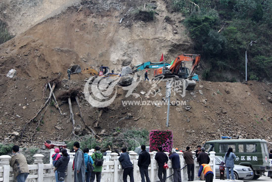 4月20日地震發(fā)生后,位于寶興縣青衣江邊的兩河口路就被掉落的石塊和塌方泥土阻斷,并有多輛三輪車、汽車和電動車被掩埋。大眾網(wǎng)特派記者在現(xiàn)場看到,被阻路段約有百米長,4到5米高。讓救援人員著急的是,這條路是連通寶興縣和五龍鄉(xiāng)等五個鄉(xiāng)鎮(zhèn)的唯一道路,被阻后,運往寶興縣的救援物資無法送往受災的五個鄉(xiāng)鎮(zhèn),這給救援工作帶來很大的困難。