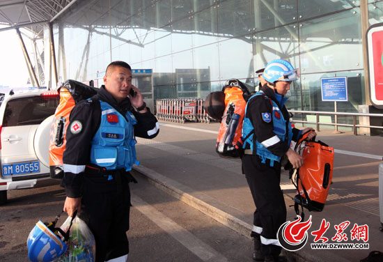 山東省紅十字會藍天救援隊隊員趕到機場