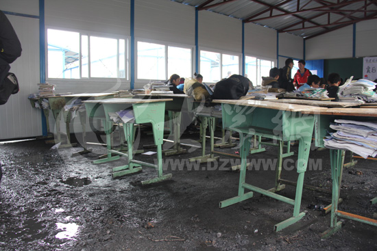 學(xué)生們?cè)诳油莘e水的板房教室內(nèi)復(fù)課。24日,四川省副省長(zhǎng)黃彥蓉要求希望工程隊(duì)當(dāng)天解決這個(gè)問題。大眾網(wǎng)特派記者 李兆輝攝